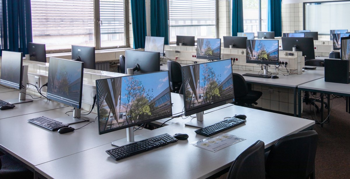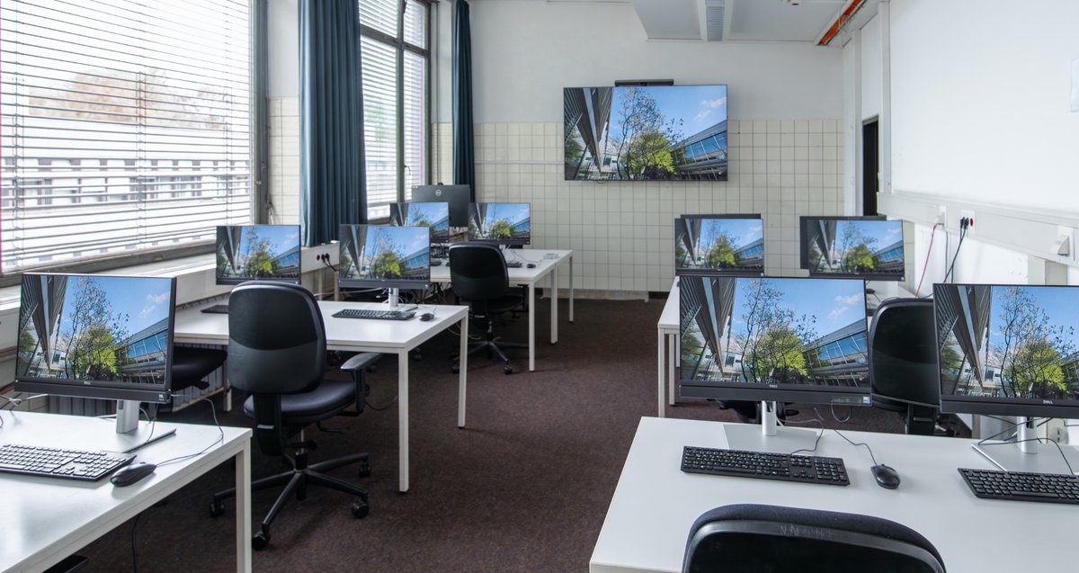 Die studentischen Arbeitsplatz-PCs in Raum 2.119A und 2.119B sind mit Windows 11 und nicht spiegelnden 23,8-Zoll-Monitoren (16:9) ausgestattet. Alle Arbeitsplätze verfügen über höhenverstellbare Sitze. Eine detaillierte Übersicht der installierten Software findet sich hier.