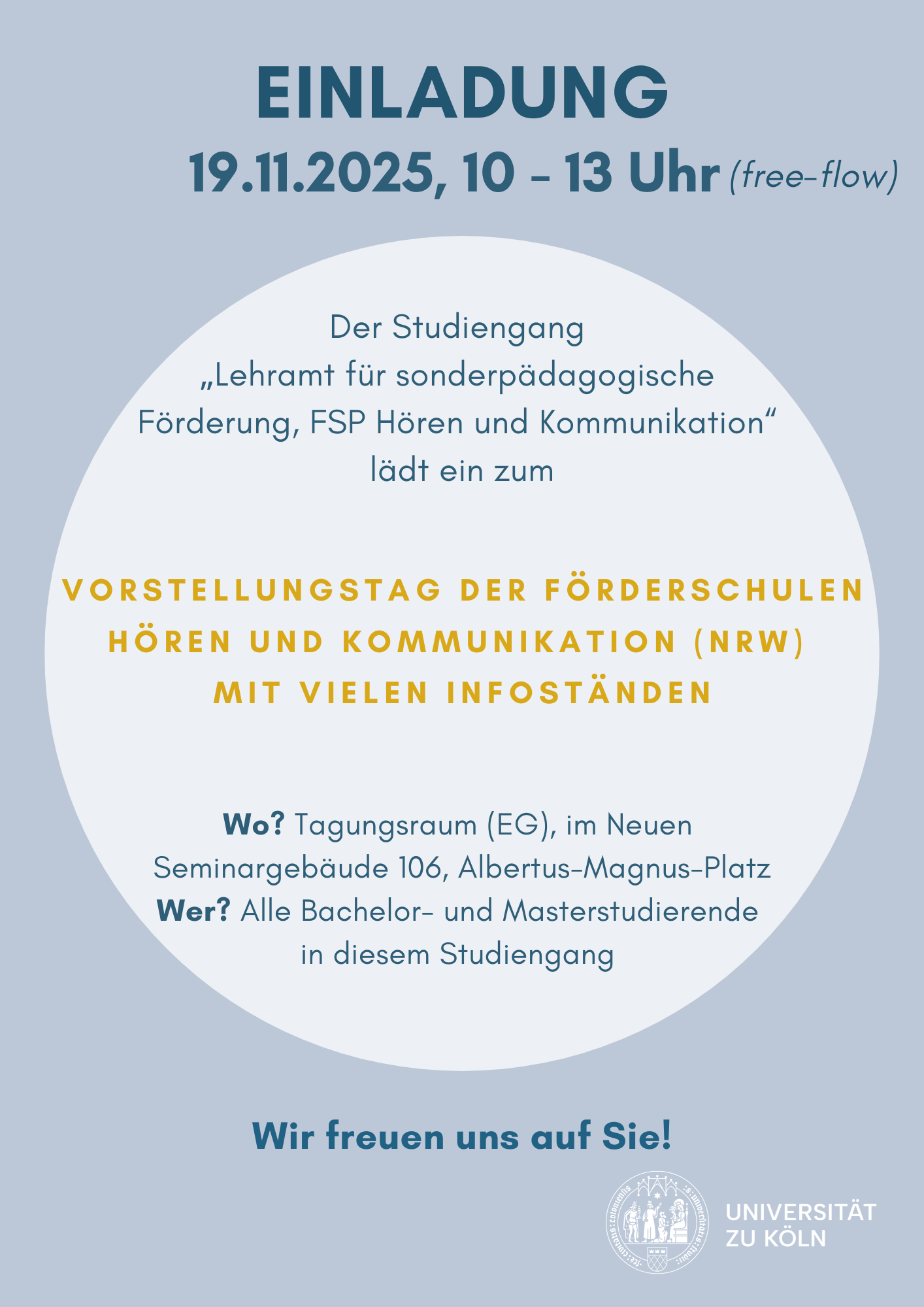 19. November 2025 I Vorstellungstag der Förderschulen mit dem Förderschwerpunkt Hören und Kommunikation an der Universität zu Köln