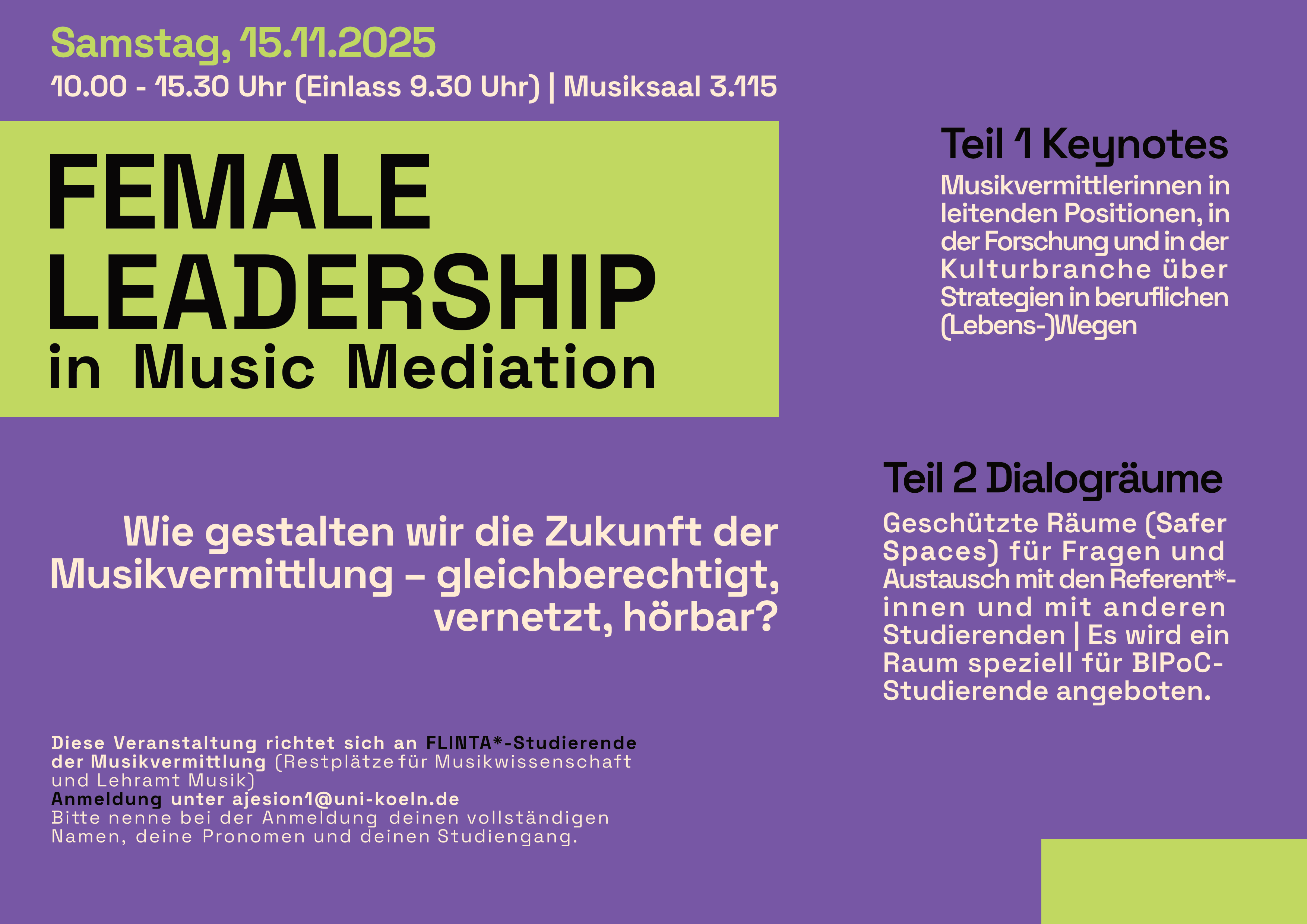 Lebenswege und Lebenslaufmodelle sind bis heute von dem Ideal eines geradlinigen, auf Karriere ausgerichteten und damit männlichen Modells geprägt. In der Keynote soll dies an Beispielen aus der Musikgeschichte problematisiert sowie Aspekte von Fürsorge thematisiert werden. Damit sollen patriarchale Muster und gleichzeitig Geschichtserzählungen bewusst gemacht werden, die Frauen bzw. Flinta kontinuierlich ausgeblendet haben.